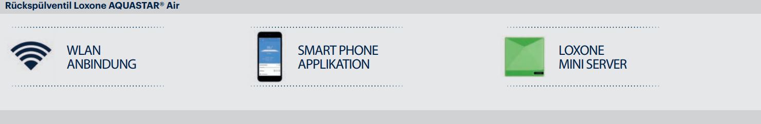 Durch die Anbindung des Aquastar an das Loxone Smart Home System, kann diese in Verbindung mit dem Loxone Miniserver um zahlreiche weitere Anwendungsgebiete erweitert werden. (Server nicht im Lieferumfang)