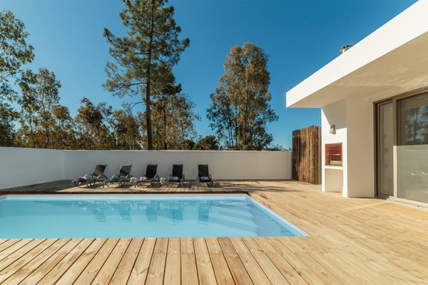 Möchten Sie um Ihren Swimmingpool eine coole Betonoptik oder wollen Sie ihn lieber in eine Holzterrasse integriert?