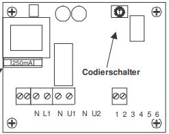 Auf der Platine der Steuerung befindet sich oben rechts ein Codierschalter. (Siehe Bild 2) Die Rückspülzeit kann an diesem Codierschalter mithilfe eines Schraubendrehers eingestellt werden. Die auf
